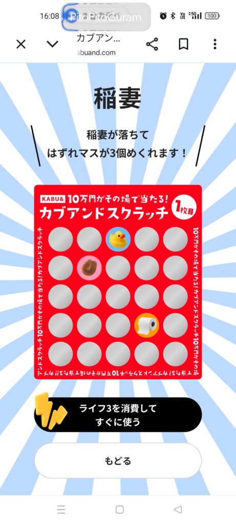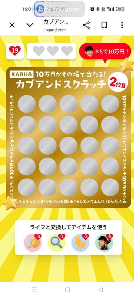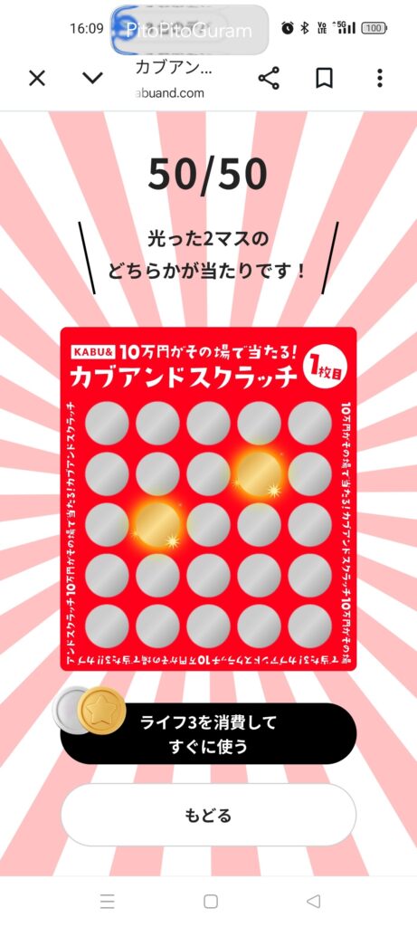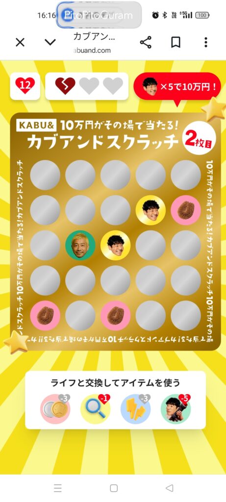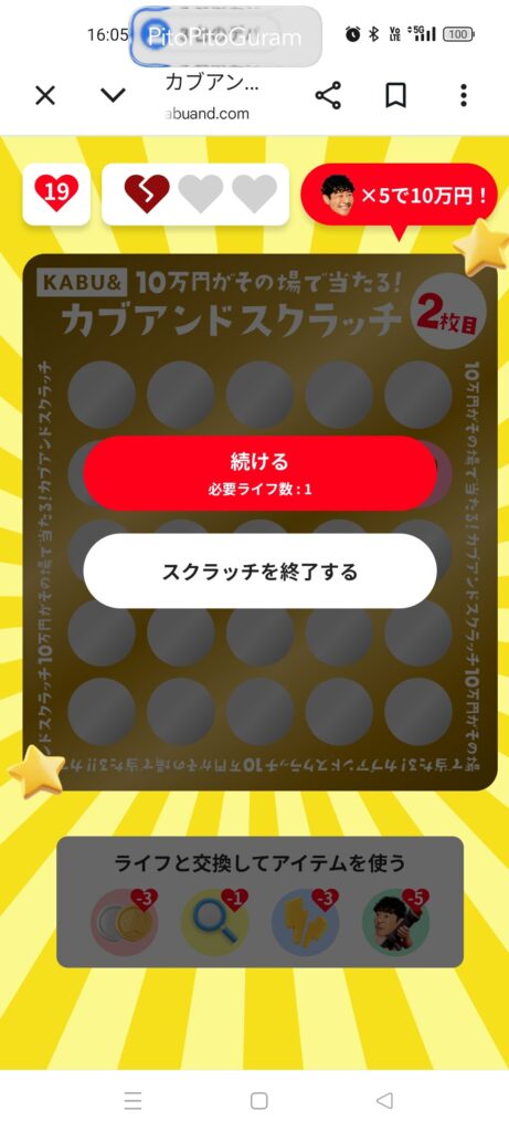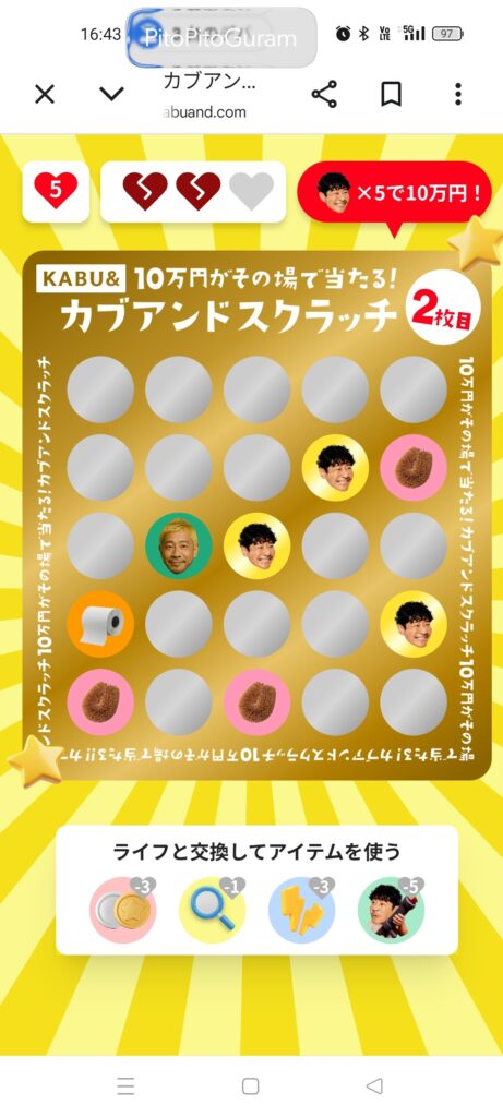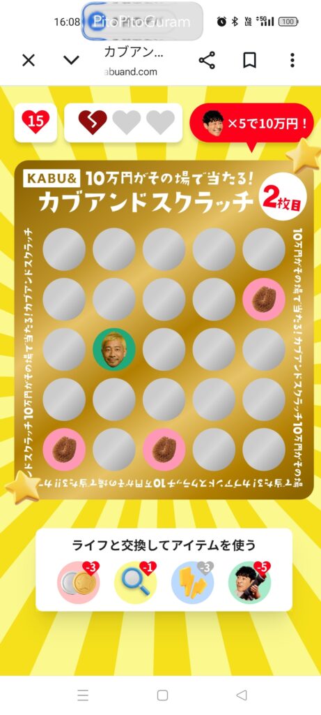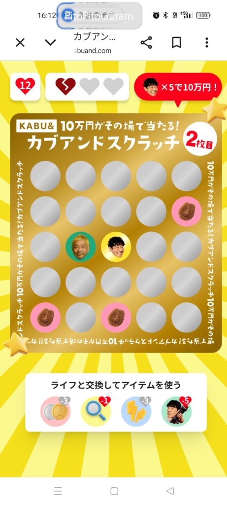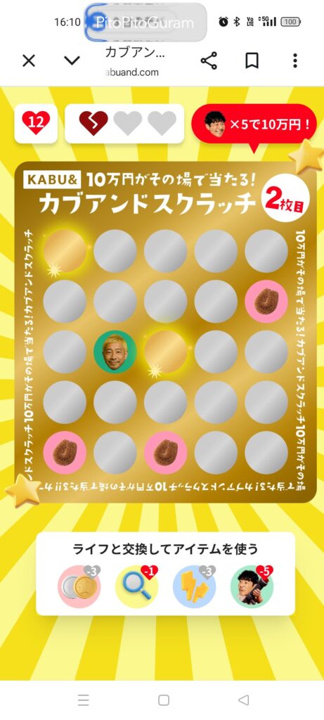 目標の10万円(当たり5個)には届きませんでしたが、最初の2つの当たりを自力で引くことができれば、当たり4つまでは確実に行けたかもしれません。
