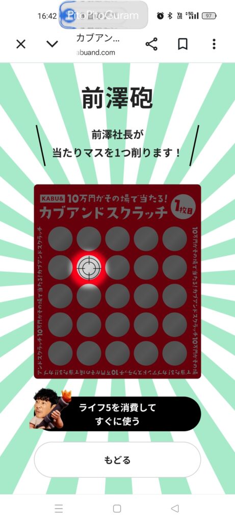 最初から直感が外れてしまいましたが、ここで前澤さんから「当たりマスが6個入っている」というメッセージが届きました!