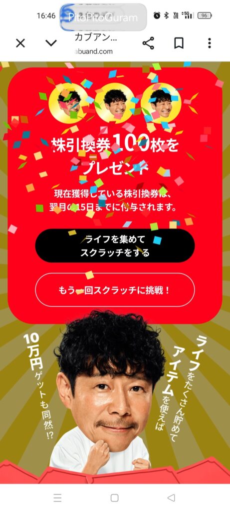 最終結果は、当たり3個「株引換券100枚」(*’▽’)