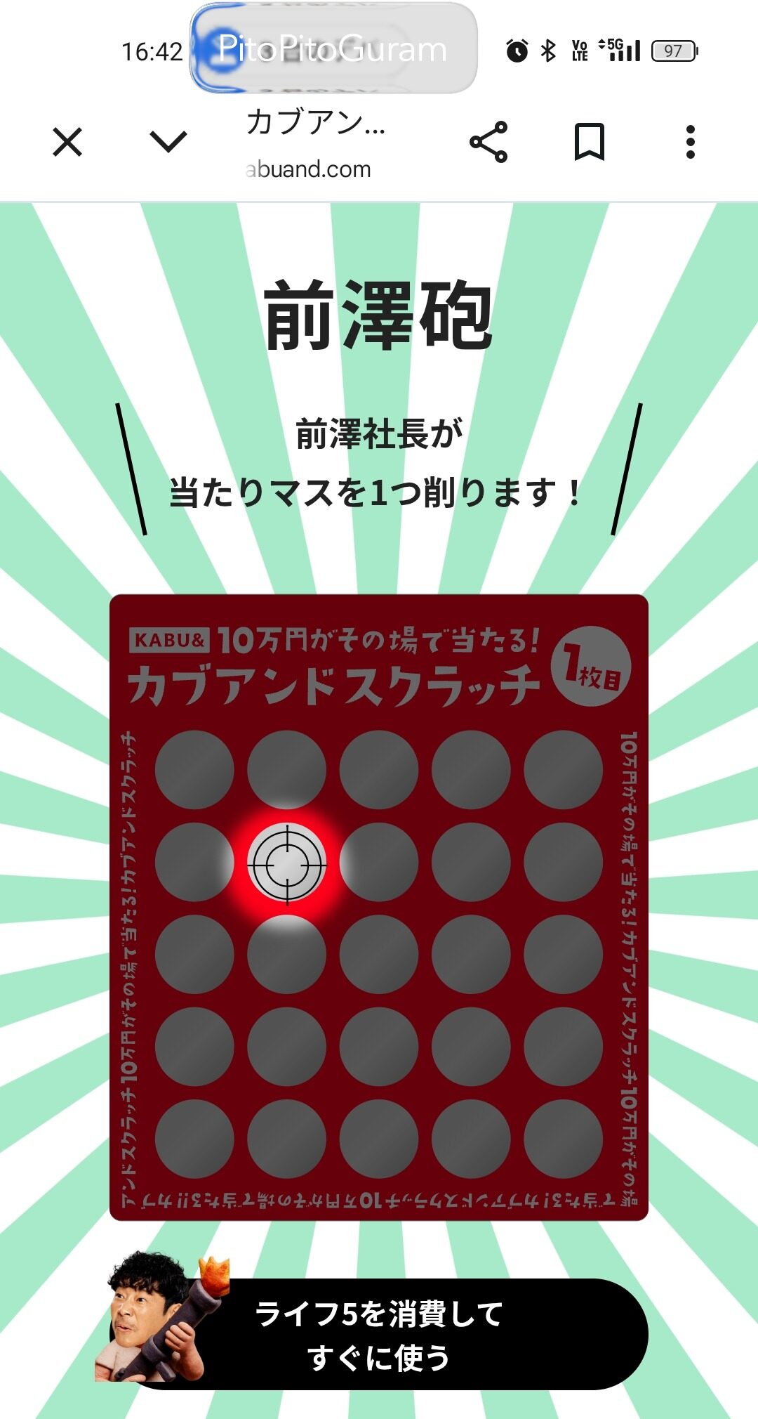 最初から直感が外れてしまいましたが、ここで前澤さんから「当たりマスが6個入っている」というメッセージが届きました!