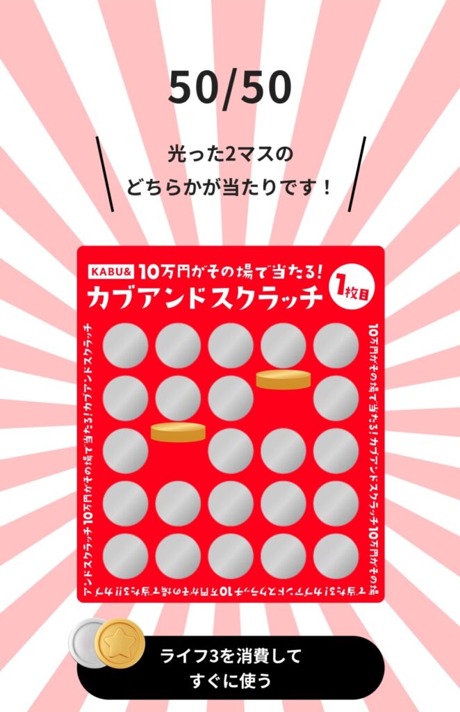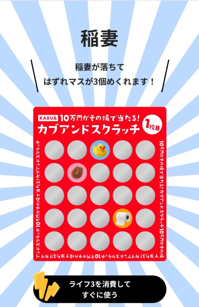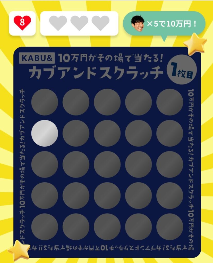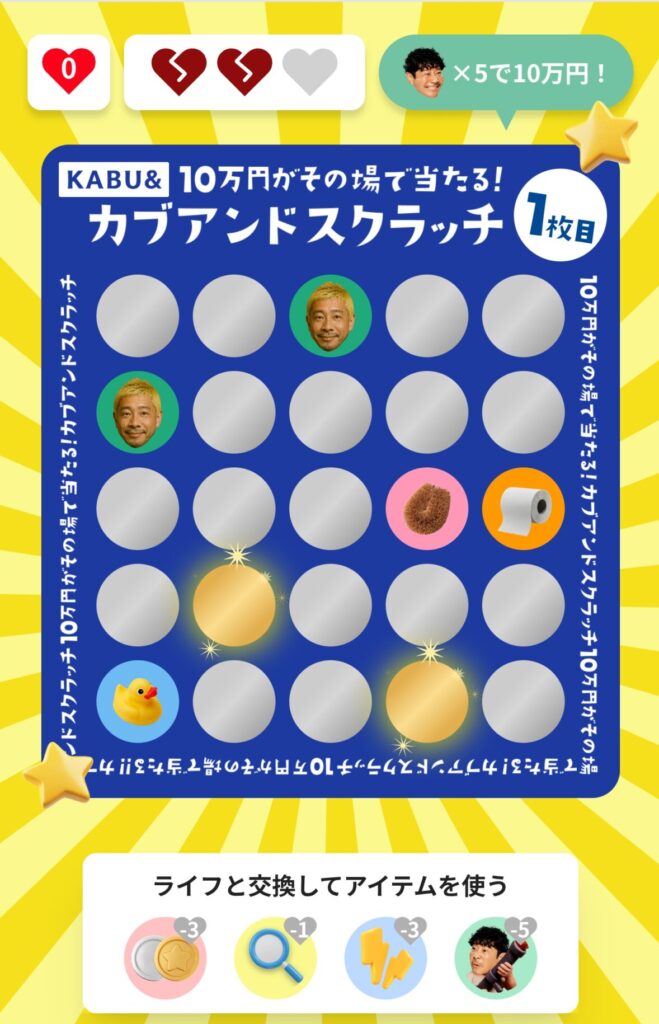 今月のカブアンドスクラッチ、なんと旦那様の画面に「金色のスクラッチカード」が出ました!