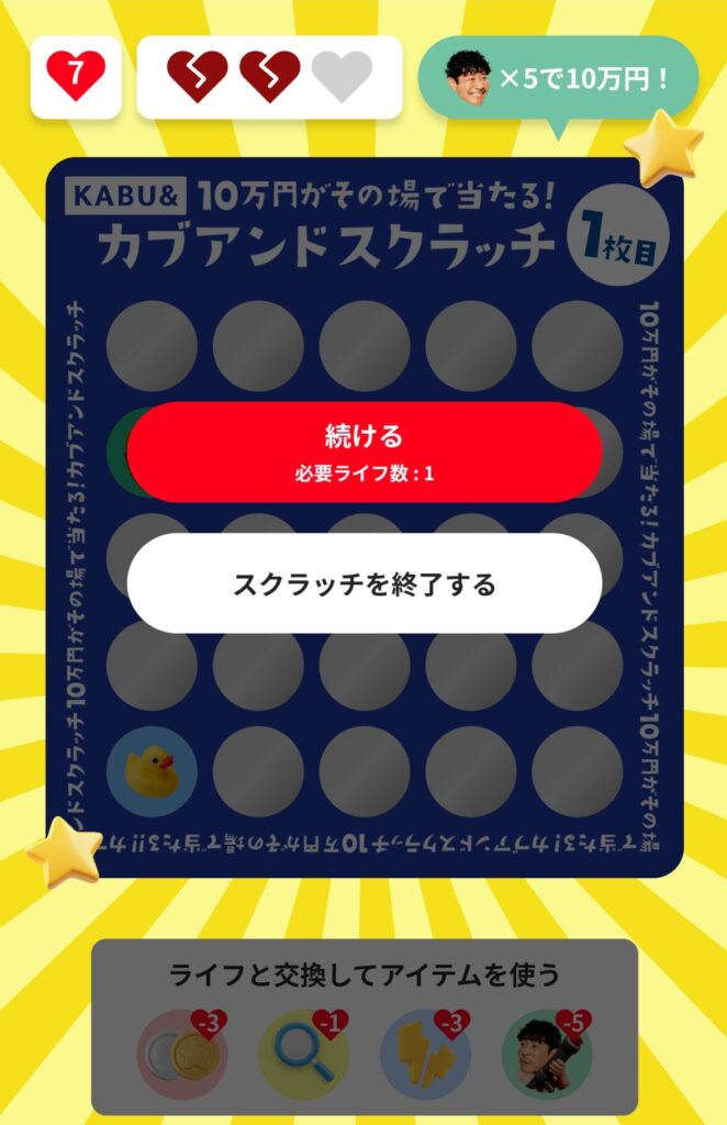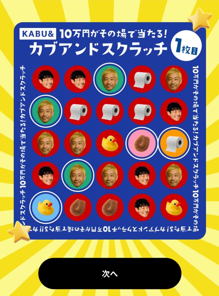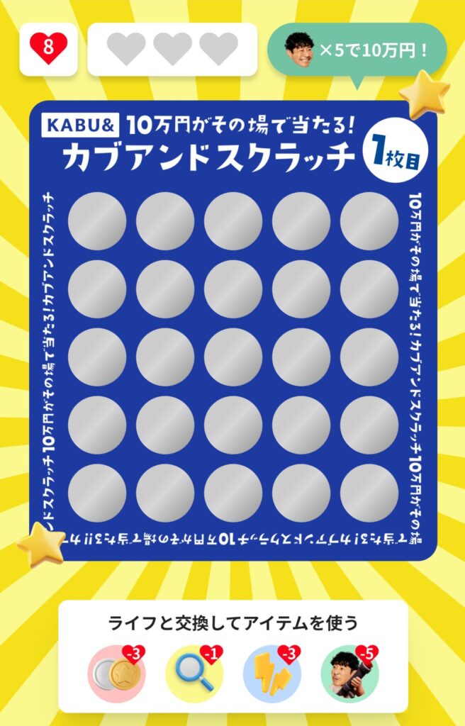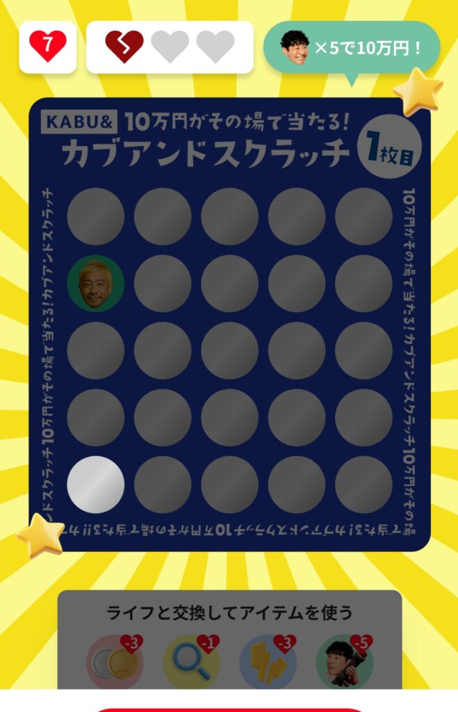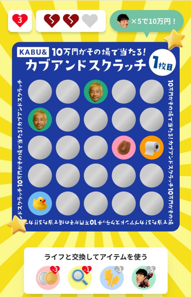 今月のカブアンドスクラッチ、なんと旦那様の画面に「金色のスクラッチカード」が出ました!