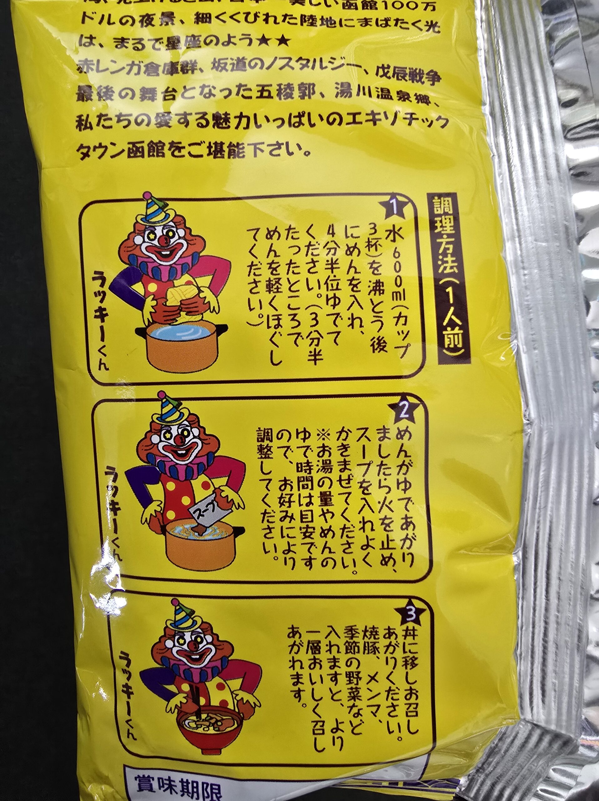 昨年、函館のお土産として「ラッキーピエロ」のインスタントラーメンをいただきました。