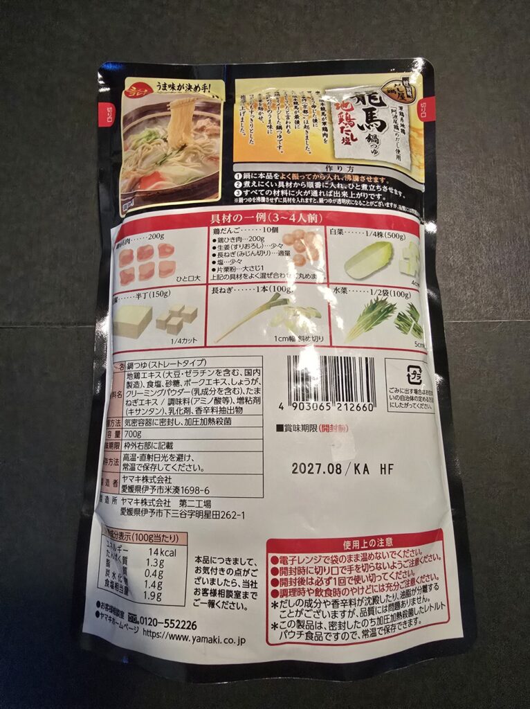 今回は、幕末の志士・坂本龍馬ゆかりの味を再現したという、ヤマキの「龍馬鍋つゆ 地鶏だし塩」の実食レビューをします!